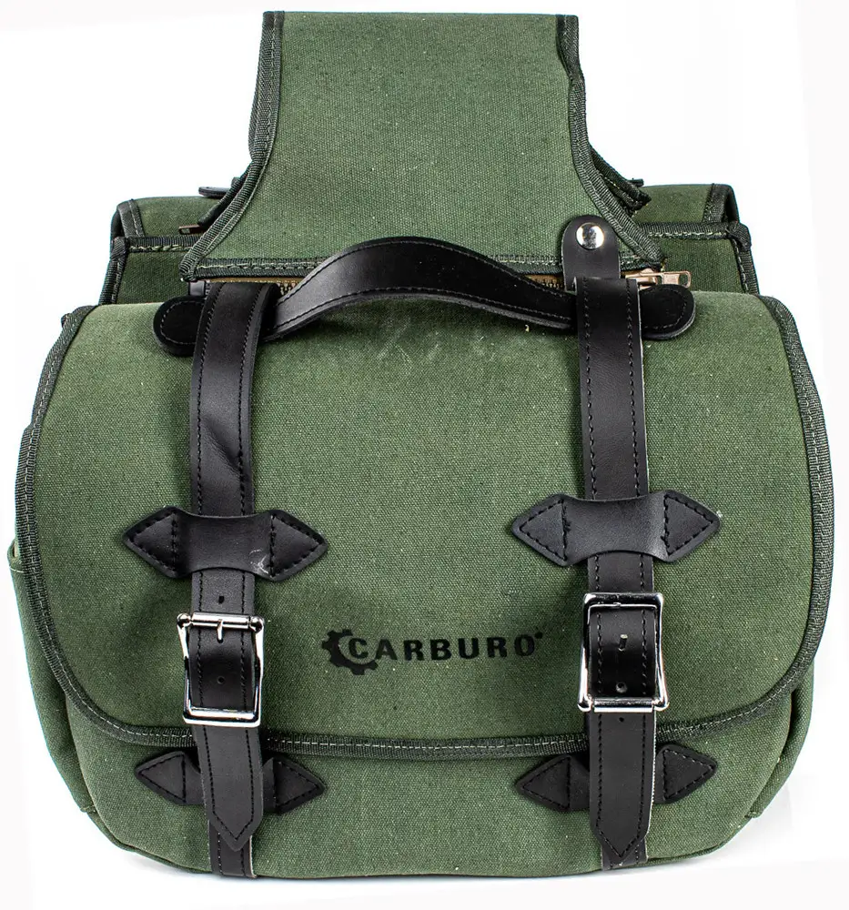Le borse Matrix realizzate in Canvas e pelle sintetica sono un sistema di bagagli ideali per chi cerca un paio di borse capienti e capaci di contenere il necessario ai tuoi spostamenti in modo ordinato e sicuro. Facili da rimuovere grazie al bottone automatico, che permette di portarle con sé ad ogni sosta senza dover alzare la sella per smontarle, e alla pratica maniglia per il trasporto. Scegli la Qualità e lo Stile Carburo.