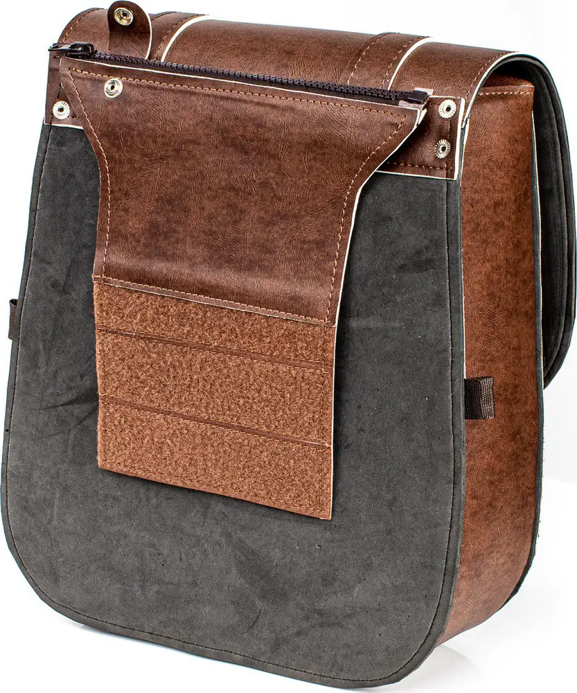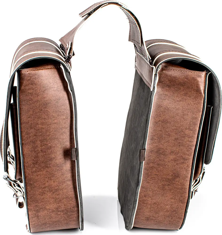 – Borse laterali in pelle sintetica effetto invecchiato